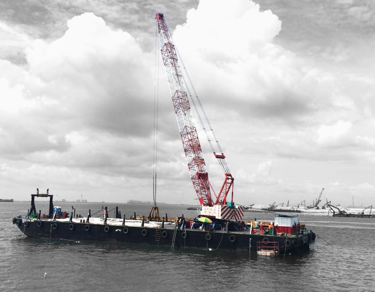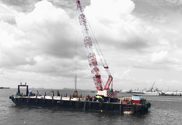 Our Crane barge carry out a broad range of activities ranging from offshore lifting, transfer of cargoes, anchorage recovery, anchor and anchor chain replacement, navigation buoys, dredging of waterways, salvage work at sea and support of marine construction work.